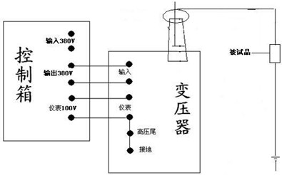 接電源前,電源控制箱(臺)的調壓器必須調到零位。接通電源后,綠色指示燈亮,按一下啟動按鈕,紅色指示燈亮,表示試驗變壓器已接通控制電源,開始升壓。
